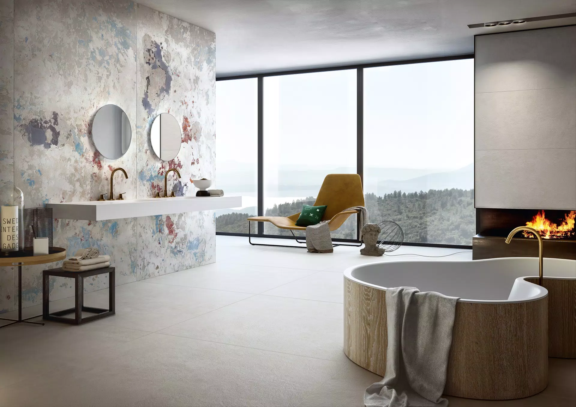Then there is Archeologie, a wall covering designed by Franco Guerzoni where the wall is like a book to leaf through, a journey towards the interior that allows you to trace the experience, the memories and everything that fragment of masonry has collected over the centuries.